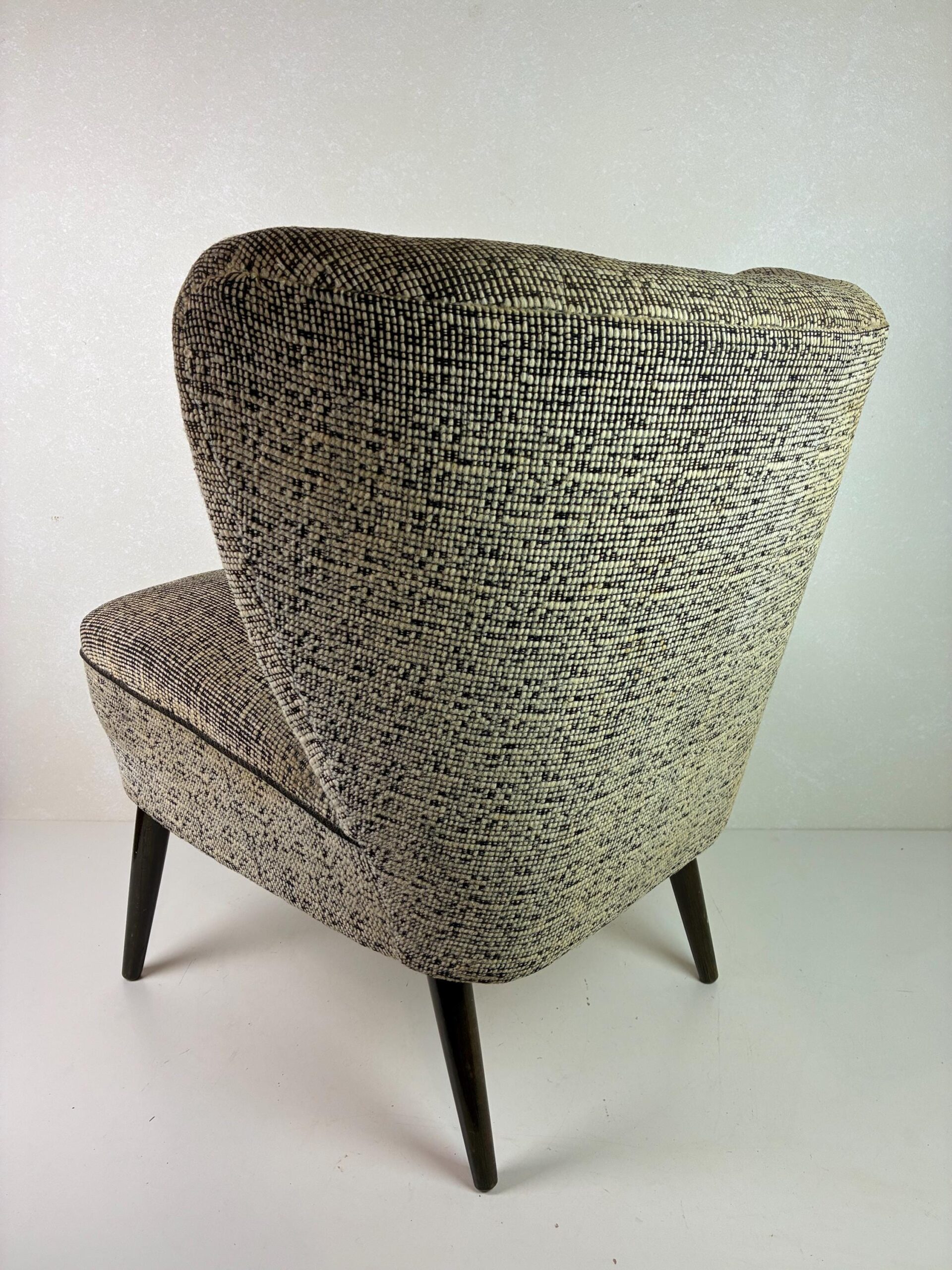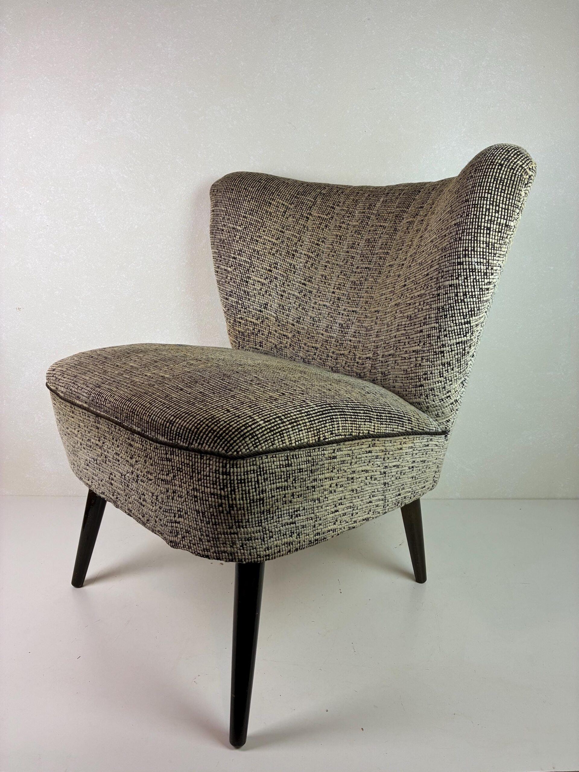 Vintage Cocktailsessel in der klassischen Form. Es handelt sich um ein altes Original mit ursprünglicher Polsterung und Bezug.