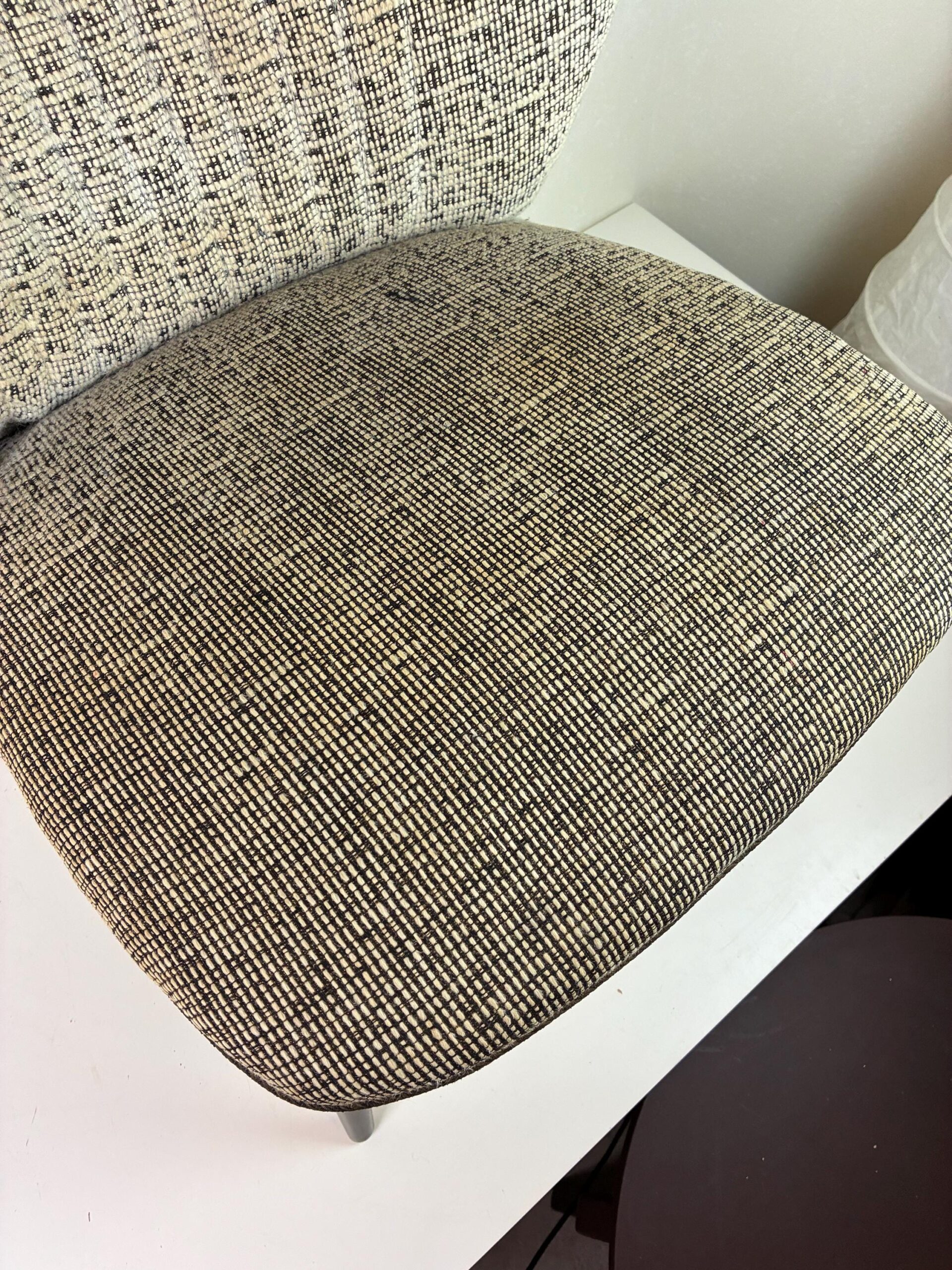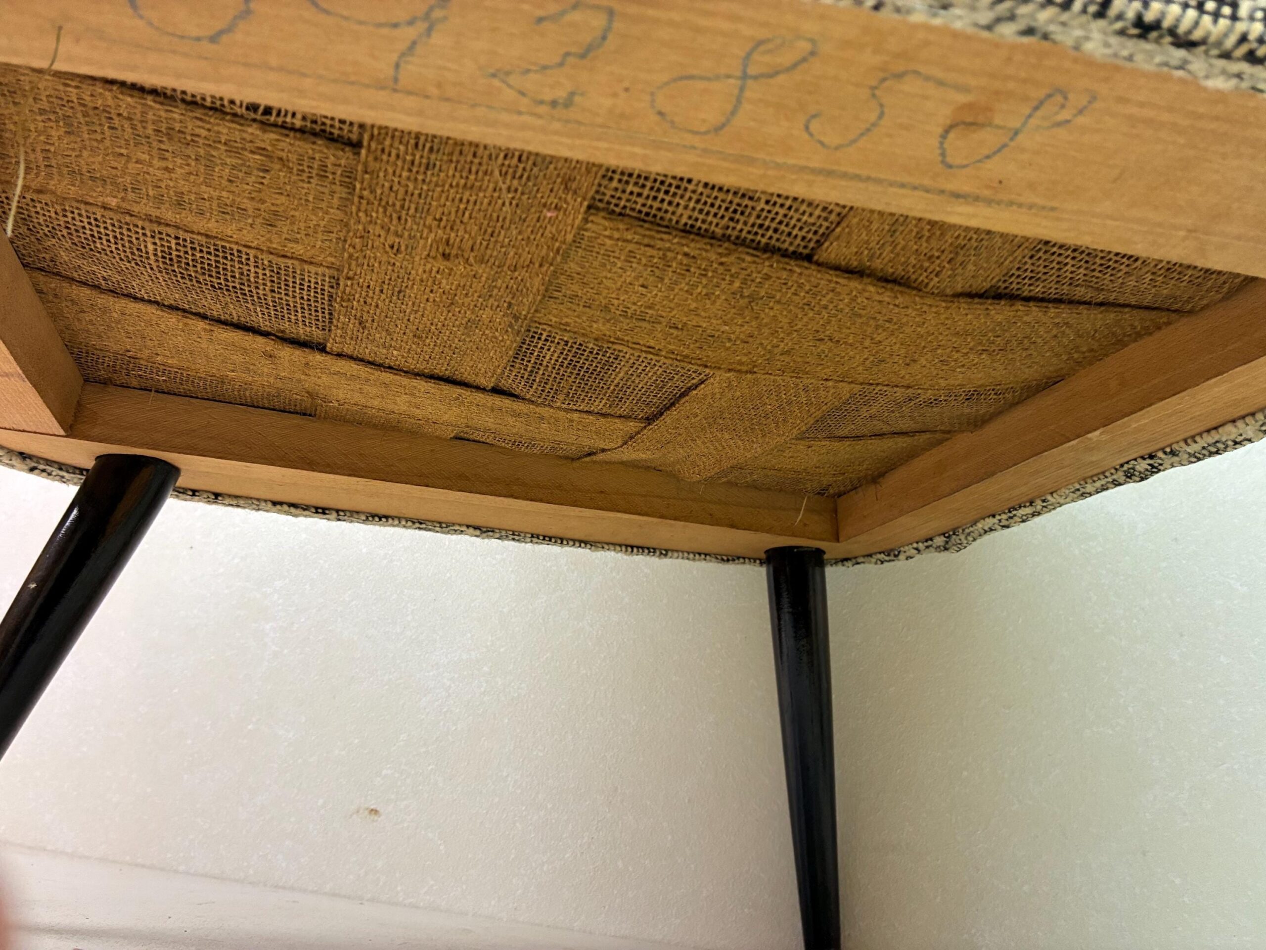 Der Sessel ist in einem sehr guten Vintage-Zustand. Der Stoff hat altersgerechte Gebrauchsspuren und Verfärbungen. Das Gestell ist super stabil. das Poster bequem.
