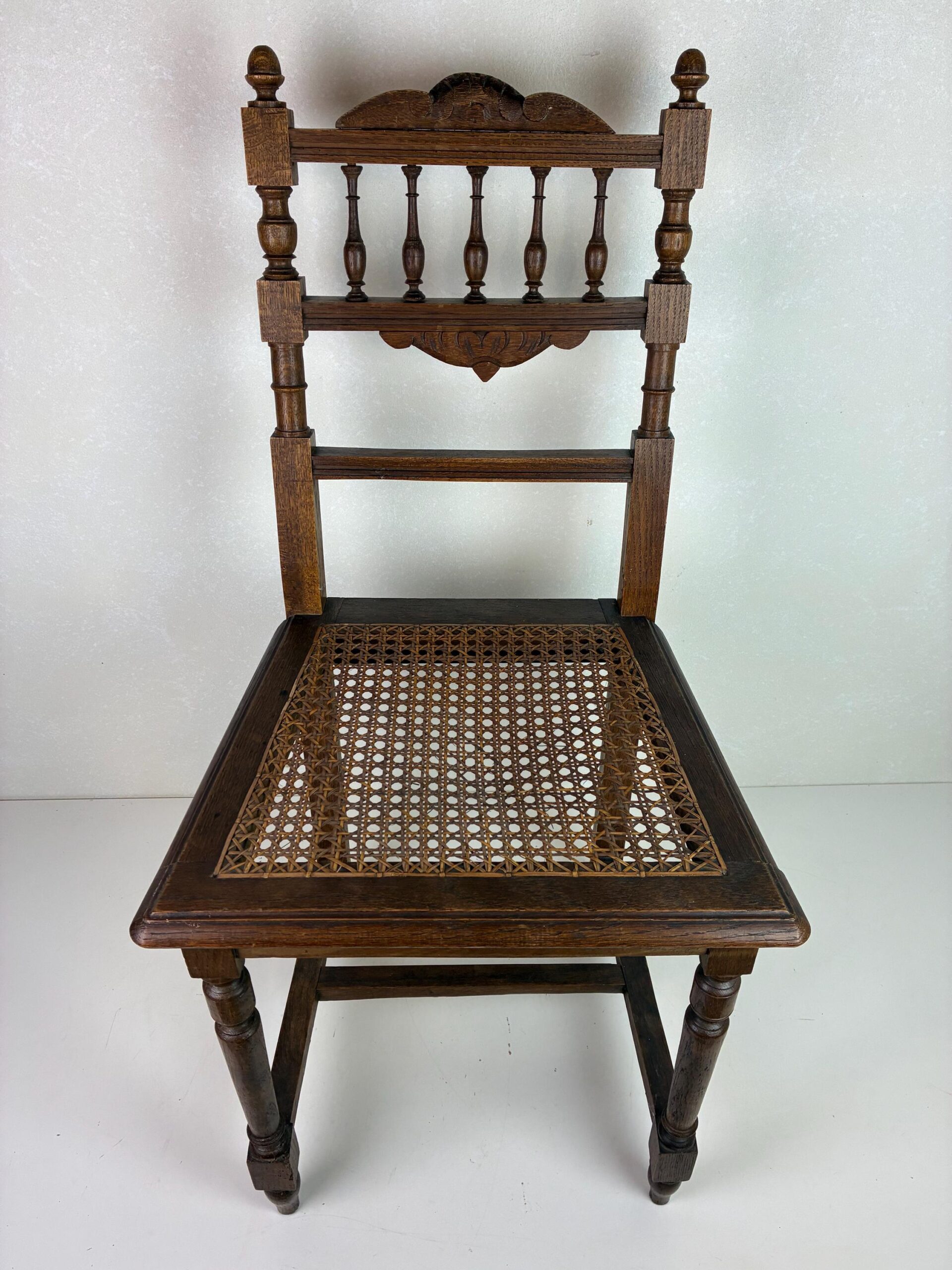 Wunderschöner Holzstuhl mit einem Sitz aus Korbgeflecht. Das Holz ist sehr edel und stabil. Zudem besitzt der Stuhl im Bereich der Rückenlehne eine besondere Schnitzerei.