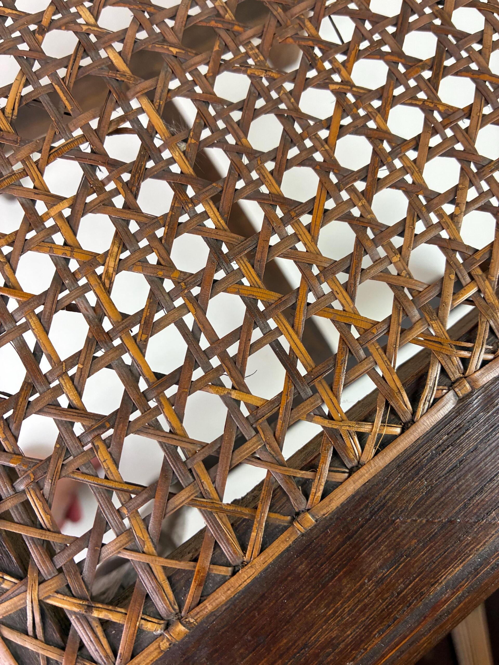 Das Korbgeflecht hat kleiner Beschädigungen (siehe Bilder), der Stuhl ist aber uneingeschränkt benutzbar.