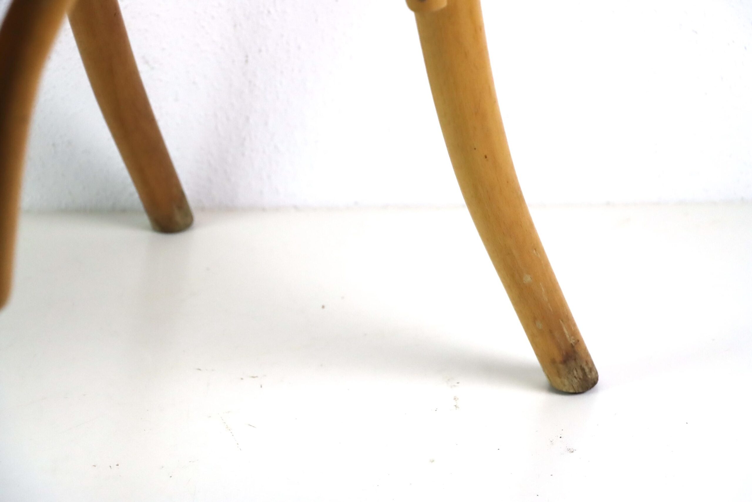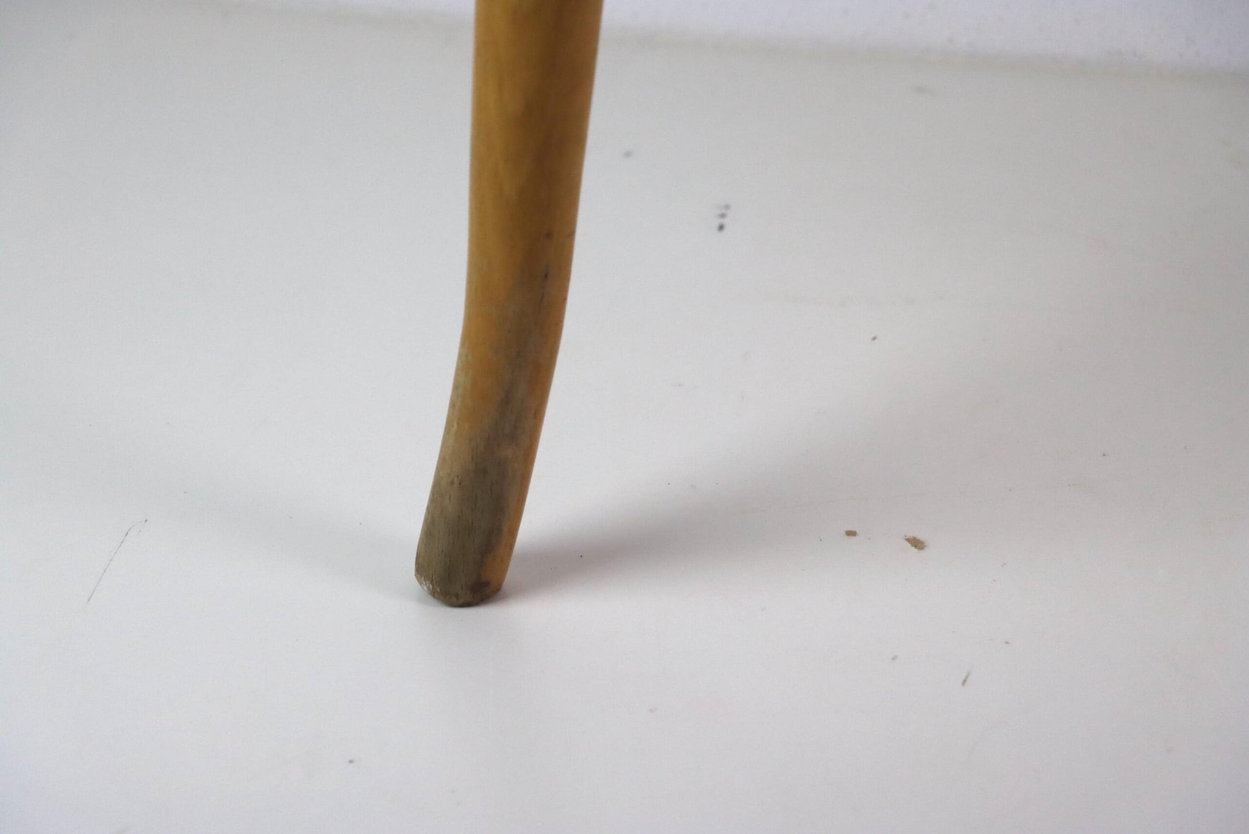 Der Stuhl ist in einem guten Vintage-Zustand. Er hat altersgerechte Gebrauchsspuren und eine tolle Patina. Die Füße des Stuhl sind unten etwas dunkel verfärbt.